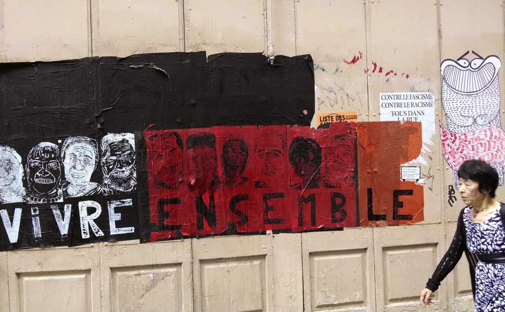 (Note, I took this photo in Montmartre (Paris) 2015 . It reads,” Live Together”.)