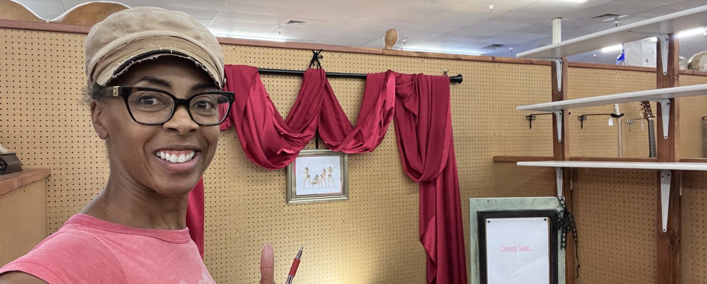 This booth is a major work in progress and a constant reminder that perfection ain’t the goal. Consistency is. I have to take my time with this to make it a success; gotta be consistent and not give up or cave in due to stress. You know me; my brain has been anxious every step of the way. SO MANY DECISIONS to make! It also forces me deal with the clutter I have – decide to sell, keep or donate — then find a way to organize, inventory, and categorize it all in a way that is appealing to a buyer. I’m curious, when you’re dealing with your own clutter, how does it make you feel? Are you overwhelmed by it or do you see it as an unemotional sort of entity that simply needs dealing with? I recently found a lady on YouTube who connects clutter to childhood trauma (whoa!). Alternatively, my friend Tanya says to examine your relationship with your stuff, listen to the messages and act accordingly. You can get more of her worldly wisdom here.